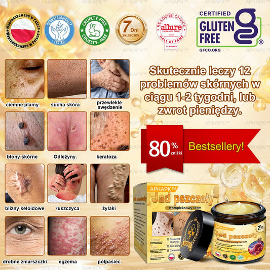 ΑPΚΑPK™Jad Pszczoły Kompleksowy Krem🧑⚕️🧑⚕️ 🥇pomaga w leczeniu problemów skórnych, takich jak: zmarszczki, blizny, plamy pigmentacyjne, rozstępy, trądzik, łuszczyca, egzema, zmiany skórne, podrażnienia, stany zapalne i inne problemy skórne🔥